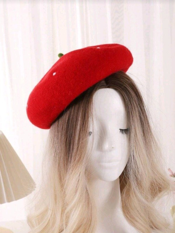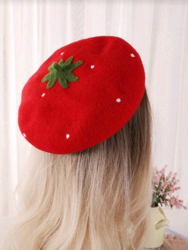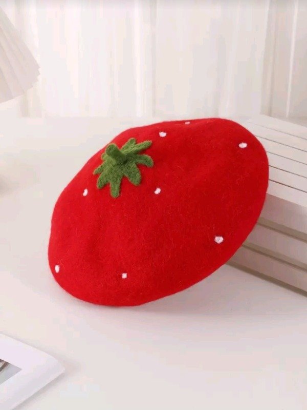 Nuestra boina con forma de frutilla es el detalle perfecto para elevar cualquier outfit y convertirlo en algo súper original, tierno y diferente. Ideal para looks kawaii, coquette, soft girl o para sumarle un toque divertido a algo más básico.