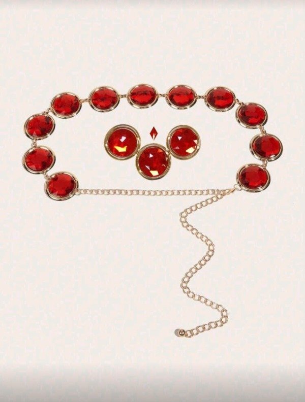 Cinturón, broches y gema de rostro.